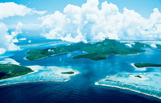protect blue lagoons and white beaches. Jagged peaks crown emerald